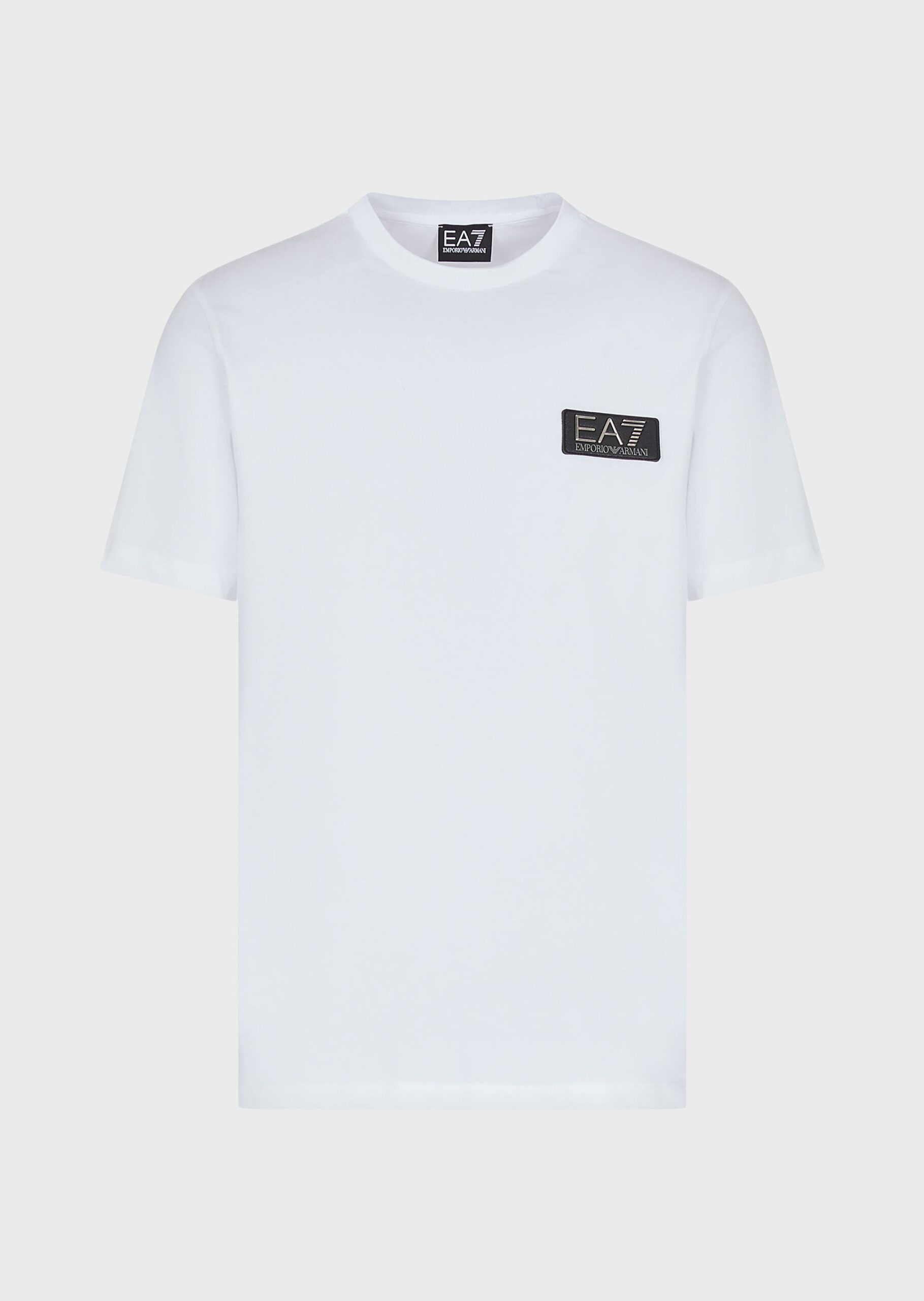 T-shirt a maniche corte dallo spirito essenziale, realizzata in morbido cotone Pima, dalla vestibilità confortevole. Un modello girocollo impreziosito dal maxi logo EA7 in metallo, pensato per completare look in chiave sportiva o dedicati al tempo libero.Composizione 100% Cotone Vestibilità regularGirocolloManiche corteLogo EA7 a contrasto sul petto