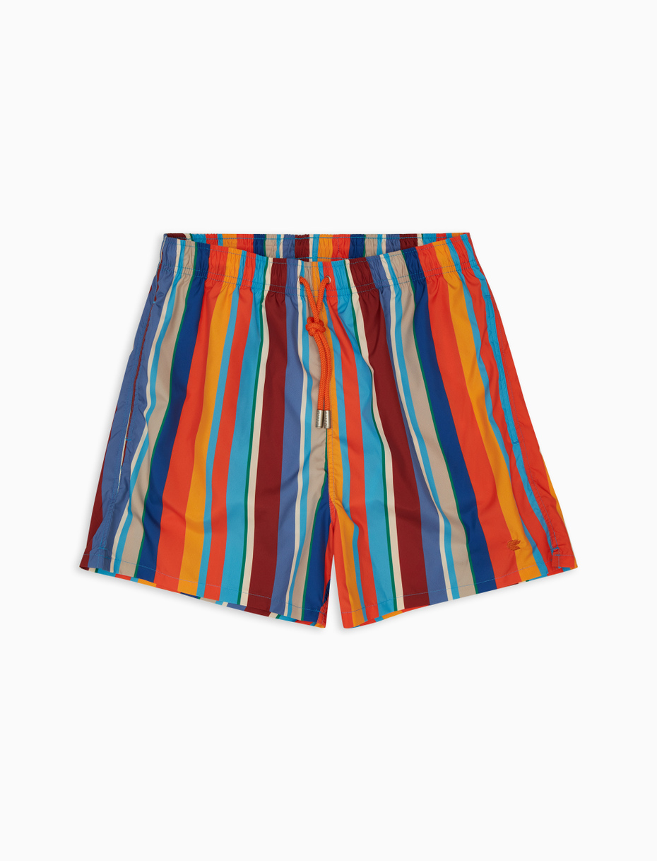 Costume da uomo modello boxer realizzato in fibra sintetica. L’elastico in vita garantisce il massimo comfort. L’iconica fantasia a righe multicolor nei toni del rosso aragosta tiene fede alla tradizione Gallo, sinonimo di qualità ed eccellenza italiana dal 1927.