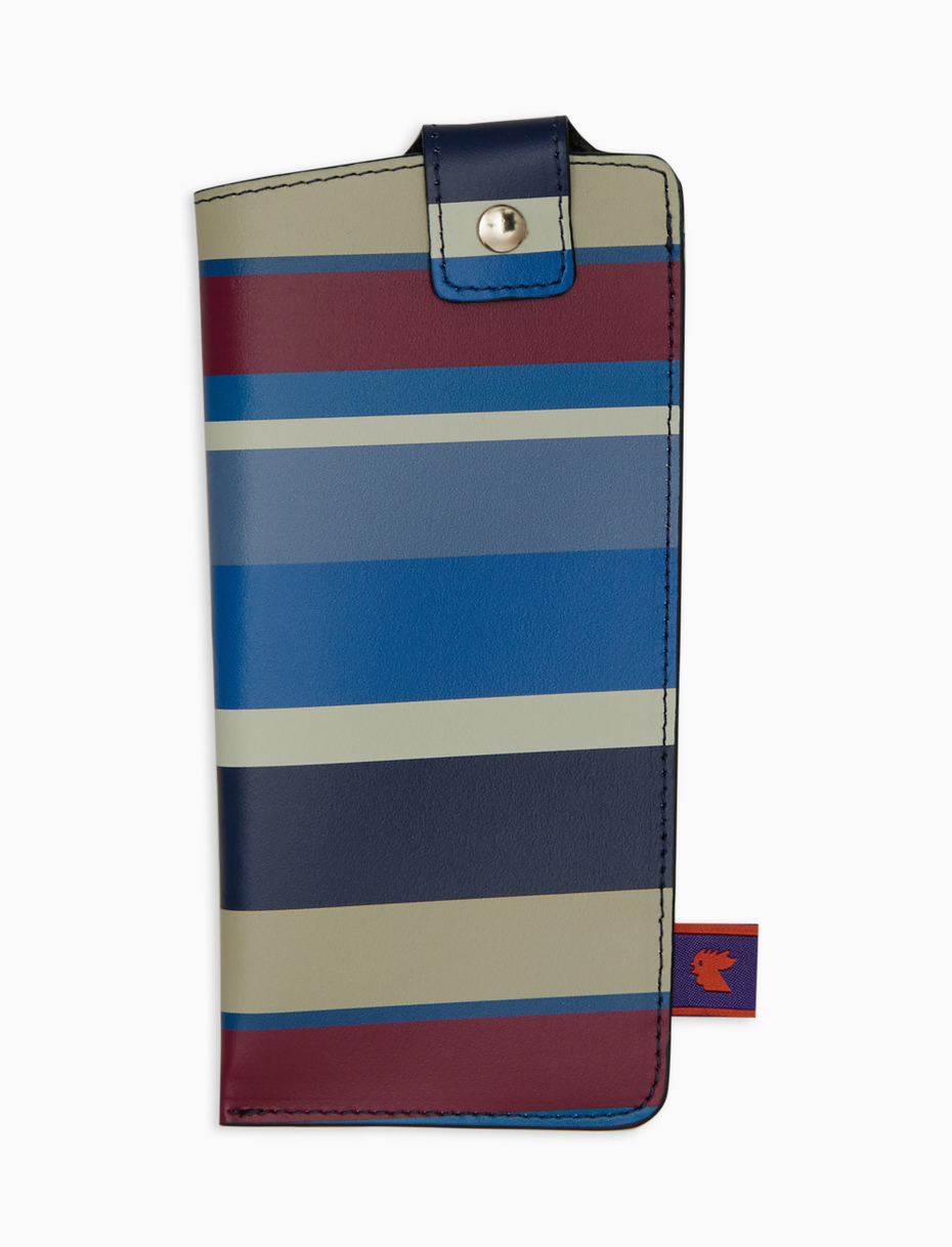 Pratico portaocchiali unisex realizzato in Italia in pelle. Inconfondibile la fantasia a righe multicolor nei toni del blu royal e prussia. Un accessorio indispensabile e divertente. Gallo: sinonimo di qualità ed eccellenza dal 1927.